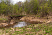 Wiosenna fotografia: bobry zostały zbudowane na rzece tamy, aby chronić je przed drapieżnikami, dużym półwodnym gryzoniem o szerokim ogonie. Znany jest z gryzienia pni drzew, które żywią się korą i budują tamy.
