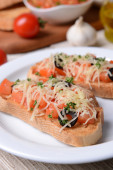 Zdjęcie "Pyszna bruschetta z pomidorami na stole z bliska" może być wykorzystywane do celów osobistych i komercyjnych zgodnie z warunkami zakupionej licencji Royalty-free. Obraz jest dostępny do pobrania w jakości wysokiej rozdzielczości do 5760x3840.