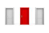 trzy drzwi - szarym i żółtym - dwa zamknięte, jeden otwarty