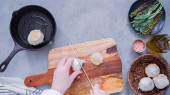 Leżeć płasko. Krok po kroku. Rozdrabnianie organicznych cukinii do robienia ciast cukiniowych.