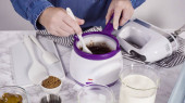 Krok po kroku. Przygotowanie domowych lodów czekoladowych w stojącej kuchennej mikserze.