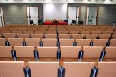 pusty uniwersytet szkolny lub kolaż powrót do koncepcji szkoły w czasie pandemii koronawirusów