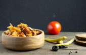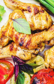 Zdjęcie "Pyszne smażone skrzydełka kurczaka. Pomidory, sos, ostra papryka, czosnek i chleb na ciemnym drewnianym tle." może być wykorzystywane do celów osobistych i komercyjnych zgodnie z warunkami zakupionej licencji Royalty-free. Obraz jest dostępny do pobrania w jakości wysokiej rozdzielczości do 5760x3840.
