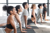 Zdjęcie "Kobra Pose. młody mężczyzna i kobieta robi ćwiczenia jogi w studio razem" może być wykorzystywane do celów osobistych i komercyjnych zgodnie z warunkami zakupionej licencji Royalty-free. Obraz jest dostępny do pobrania w jakości wysokiej rozdzielczości do 5760x3840.