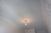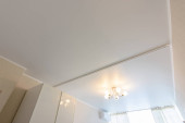 Fragment wnętrza pomieszczenia - biały matowy sufit napinany z serią reflektorów