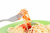 makaron penne, sos bolognese, ser parmezan i bazylia