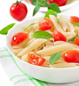 makaron penne, sos bolognese, ser parmezan i bazylia