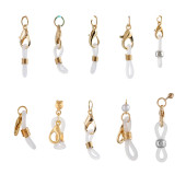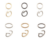 złoty chromowany zestaw metalowych łańcuchów karabińczykowych, izolowane, białe tło. Pierścień klucza ze ścieżką wycinania. widok z przodu i z boku. zastosowanie do toreb i pasów