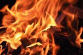 Tekstura płomienia ognia na czarnym tle. płonący ogień w piecu zbliżenie