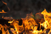 Tekstura płomienia ognia na czarnym tle. płonący ogień w piecu zbliżenie