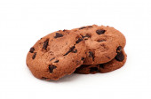 Trzy ciasteczka z mąki pszennej z kawałkami czekolady na białym tle.