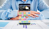 Zdjęcie "smartphone rezygnować przeźroczysty ekran w ludzkich rąk." może być wykorzystywane do celów osobistych i komercyjnych zgodnie z warunkami zakupionej licencji Royalty-free. Obraz jest dostępny do pobrania w jakości wysokiej rozdzielczości do 5760x3840.