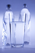 Krystalicznie czysta woda z lodem na niebieskim tle