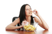 Zdjęcie "młoda kobieta jedzenie marchew z płyty" może być wykorzystywane do celów osobistych i komercyjnych zgodnie z warunkami zakupionej licencji Royalty-free. Obraz jest dostępny do pobrania w jakości wysokiej rozdzielczości do 5760x3840.