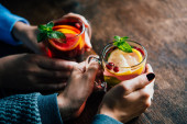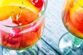 Jagodowy koktajl na tacy. zbliżenie zimnego koktajlu.