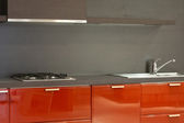 Zdjęcie "nowocześnie wyposażona kuchnia z czerwone ściany" może być wykorzystywane do celów osobistych i komercyjnych zgodnie z warunkami zakupionej licencji Royalty-free. Obraz jest dostępny do pobrania w jakości wysokiej rozdzielczości do 5760x3840.