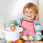 toddler chłopiec i jego matka, zabawy z domowego wypieku
