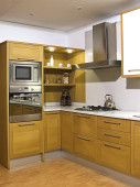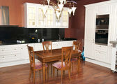 nowocześnie wyposażona kuchnia z czerwone ściany