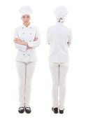 Młoda atrakcyjna kobieta w mundurze obejmujących twarz ze smażenia gotować