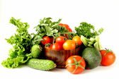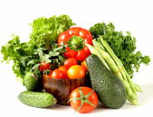 różne warzywa (awokado, ogórki, pietruszka, papryka, pomidor)