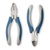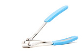 Szczypce do metalu manicure niebieskie plastikowe uchwyty na białym tle na whi
