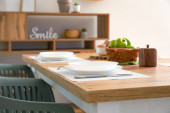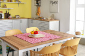 Stół jadalny we wnętrzu nowoczesnej kuchni