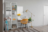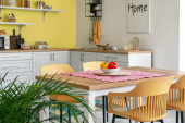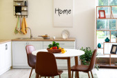 Wnętrze stylowej nowoczesnej kuchni ze stołem jadalnym
