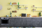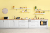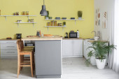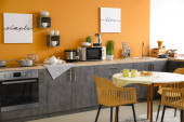 Wnętrze stylowej nowoczesnej kuchni ze stołem jadalnym