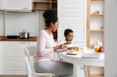 Zdjęcie "młoda Afroamerykanka kobieta wylewa sok pomarańczowy w pobliżu córki i dojrzałe owoce" może być wykorzystywane do celów osobistych i komercyjnych zgodnie z warunkami zakupionej licencji Royalty-free. Obraz jest dostępny do pobrania w jakości wysokiej rozdzielczości do 5760x3840.