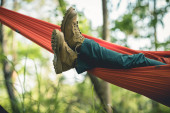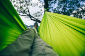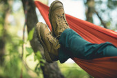 Zdjęcie "Torba podróżna leży na magicznym hamaku w lesie. Koncepcja sprzętu turystycznego. Temat zdjęcia torby w pasie na wędrówki." może być wykorzystywane do celów osobistych i komercyjnych zgodnie z warunkami zakupionej licencji Royalty-free. Obraz jest dostępny do pobrania w jakości wysokiej rozdzielczości do 5760x3840.