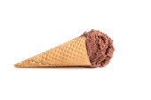 Stożek z gofrownicą z czterema gałkami lodów odizolowanymi na biało