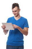 Zdjęcie "Człowiek z tabletem cyfrowym" może być wykorzystywane do celów osobistych i komercyjnych zgodnie z warunkami zakupionej licencji Royalty-free. Obraz jest dostępny do pobrania w jakości wysokiej rozdzielczości do 5760x3840.