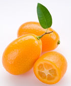 dojrzałe mandarynki z liści i plastry na białym tle
