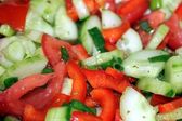 Organiczne ogórki i sałatka pomidorowa gotowe do spożycia