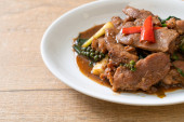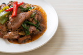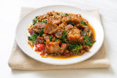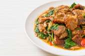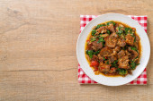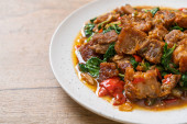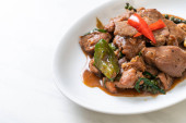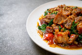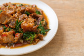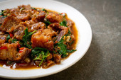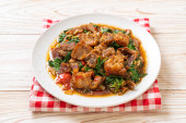smażona chrupiąca wieprzowina i bazylia - azjatycki lokalny styl ulicznego jedzenia