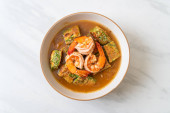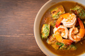 Zdjęcie "Zupa kwaśna z Tamarind Paste z krewetkami i Omeletem Warzywnym - azjatycki styl żywności" może być wykorzystywane do celów osobistych i komercyjnych zgodnie z warunkami zakupionej licencji Royalty-free. Obraz jest dostępny do pobrania w jakości wysokiej rozdzielczości do 5760x3840.