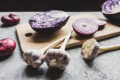 Zdjęcie "Różne surowe świeże bakłażany na desce do krojenia drewna. Koncepcja stylu życia zielonego domu i produktów rolniczych na własne potrzeby, płaskie układanie na powierzchni betonu klarnetowego, przestrzeń do kopiowania" może być wykorzystywane do celów osobistych i komercyjnych zgodnie z warunkami zakupionej licencji Royalty-free. Obraz jest dostępny do pobrania w jakości wysokiej rozdzielczości do 5760x3840.