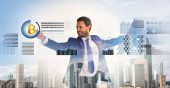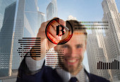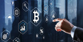 Zdjęcie "Tworzenie portfela bitcoin. Kryptowaluta górnicza bitcoin. Rozwiąż blok zarabiać. Technologia blockchain. Górnicza bitcoin. Przyszłe cyfrowe pieniądze bitcoin. Człowiek interakcji wirtualny wyświetlacz grafiki biznesowej" może być wykorzystywane do celów osobistych i komercyjnych zgodnie z warunkami zakupionej licencji Royalty-free. Obraz jest dostępny do pobrania w jakości wysokiej rozdzielczości do 5760x3840.