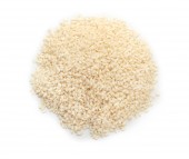 Biały ryż okrągły odizolowany na białym tle. Widoki z przodu, zbliżenie.