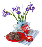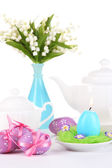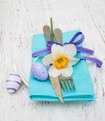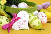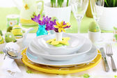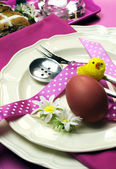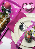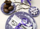 szczęśliwe Wielkanoc fioletowy i żółty tematu jadalnia tabeli miejsce ustawienia.