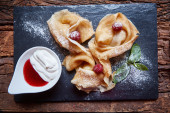 Kwiaty smażone w głębokim oleju cukinia. Płytkie dof