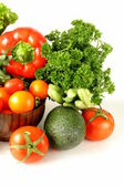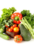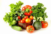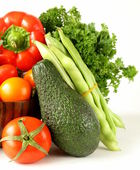 różne warzywa (awokado, ogórki, pietruszka, papryka, pomidor)