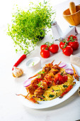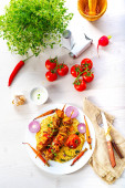 Rolada warzywna z pieczonej wieprzowiny z sałatkami