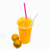 Bujny lód z pomarańczą w białym tle Plastic Cupon.