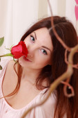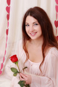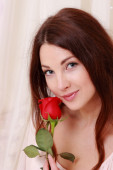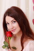 czerwona róża z uśmiechnięte dziewczyny romantyczny