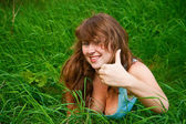 Seksowna blondynka leżącego w trawiastym boisku (6)