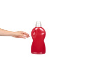 Płyn do płukania jamy ustnej w plastikowej butelce.