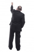 Starszy biznesmen pewnie wystąpi. izolowany na białym