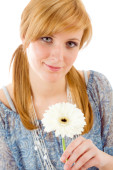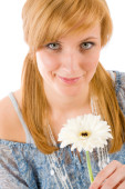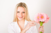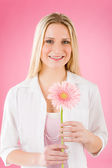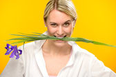 kobiety posiadają jeden wiosna irys kwiat uśmiechnięty