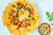 Meksykańska sałatka kukurydziana w białym talerzu. Meksykańska koncepcja żywności.